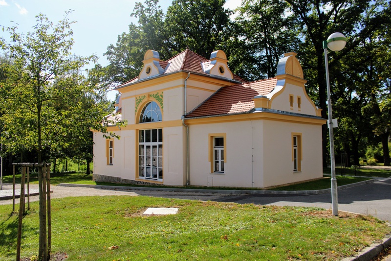 Nejstarší a jediná dosud dochovaná budova se nachází v jihovýchodní části areálu a byla postavena v roce 1911 jako součást Všeobecné veřejné okresní nemocnice císaře a krále Františka Josefa I.