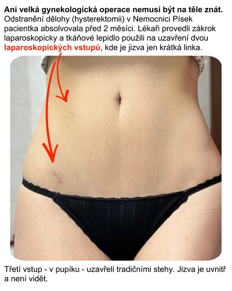 Lékaři písecké nemocnice se při některých operacích obejdou i bez šití. Namísto klasických stehů používají k uzavření operačních ran tkáňové lepidlo. Osvědčuje se například u gynekologických laparoskopických zákroků, po nichž zanechá jen minimální jizvy.